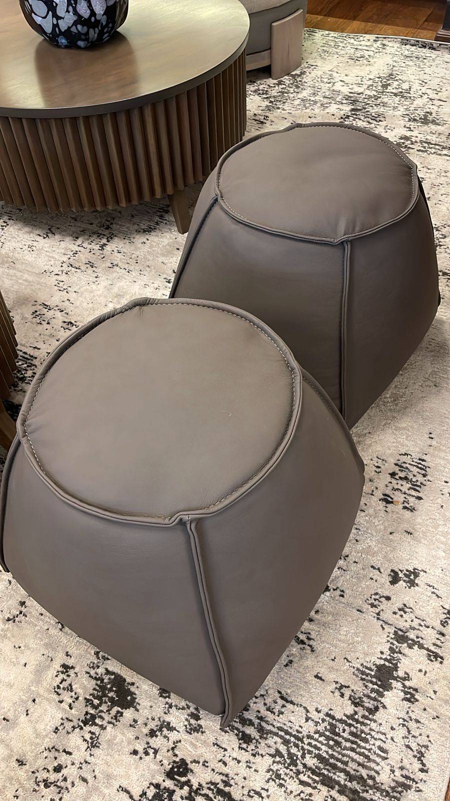 OTTOMAN EN LEATHER GRIS